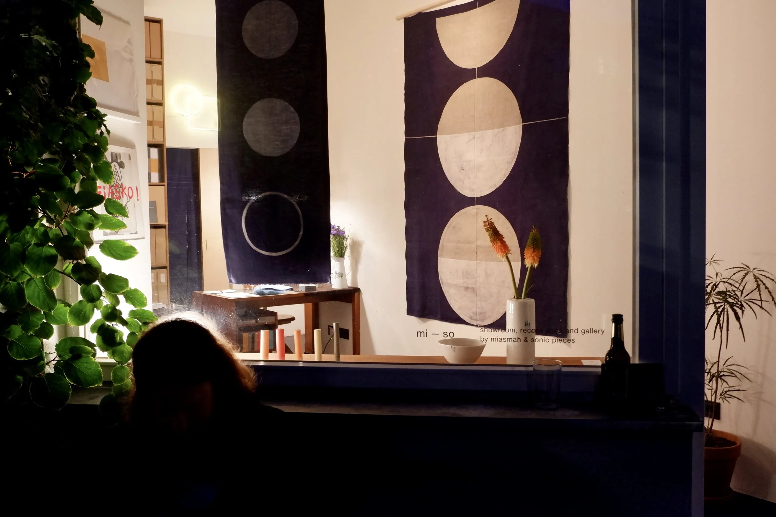 All pieces seen in this exhibition are printed and dyed twice, which is unusual in conventional blue printing. Franziska also does custom-made works on request