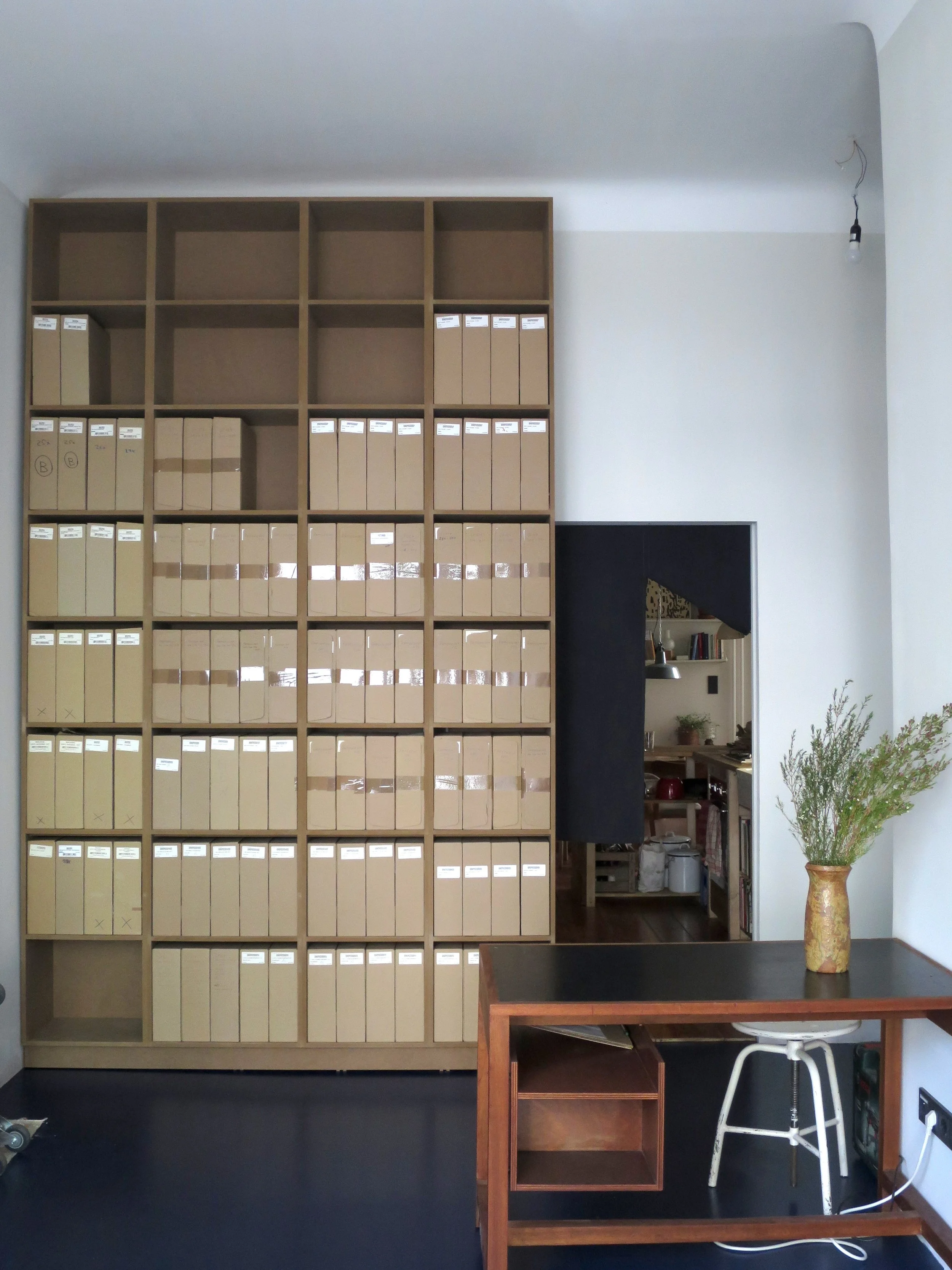 A showroom for our labels (Miasmah - Sonic Pieces) and a small record store was something we had been talking about for years. But it wasn't until spring/summer 2019, when the circumstances at our previous place changed, that we actively began looking for new premises. One morning, after weeks of online research, an interesting listing popped up on my screen more or less coincidentally. The place met many of the criteria that were important to us and was located in one of our favourite neighbourhoods, so we went for a viewing. In fact, it was the only viewing we had during this search. When we saw the place, it had been empty for many years and was quite run-down. What is now our kitchen was then the bike storage for the building. We certainly needed some imagination to envision how to transform this place into a living and working space, including a shop, but we decided to take on the task.