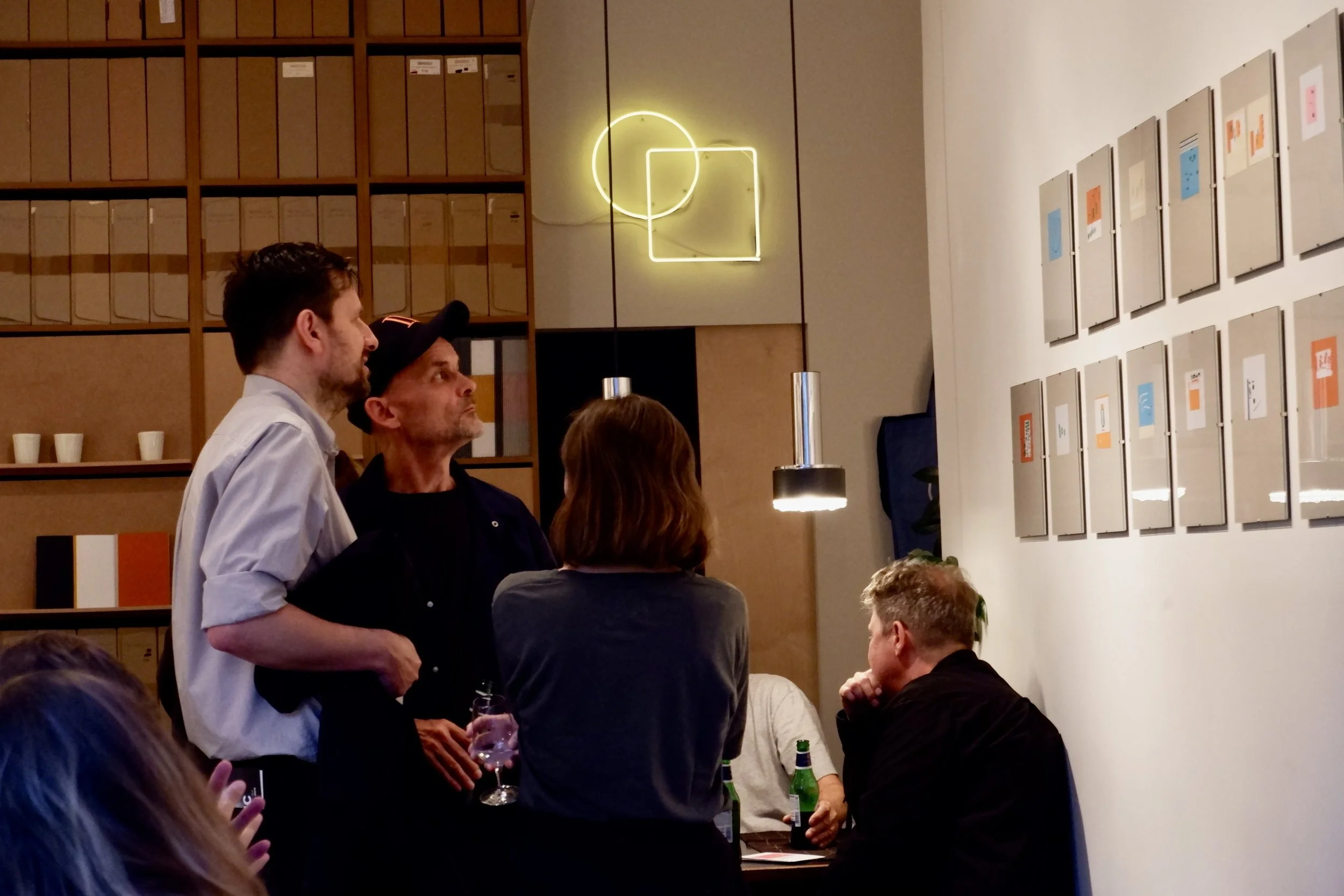 Tim Tetzner, F.S.Blumm & Monique discussing art during the vernissage.